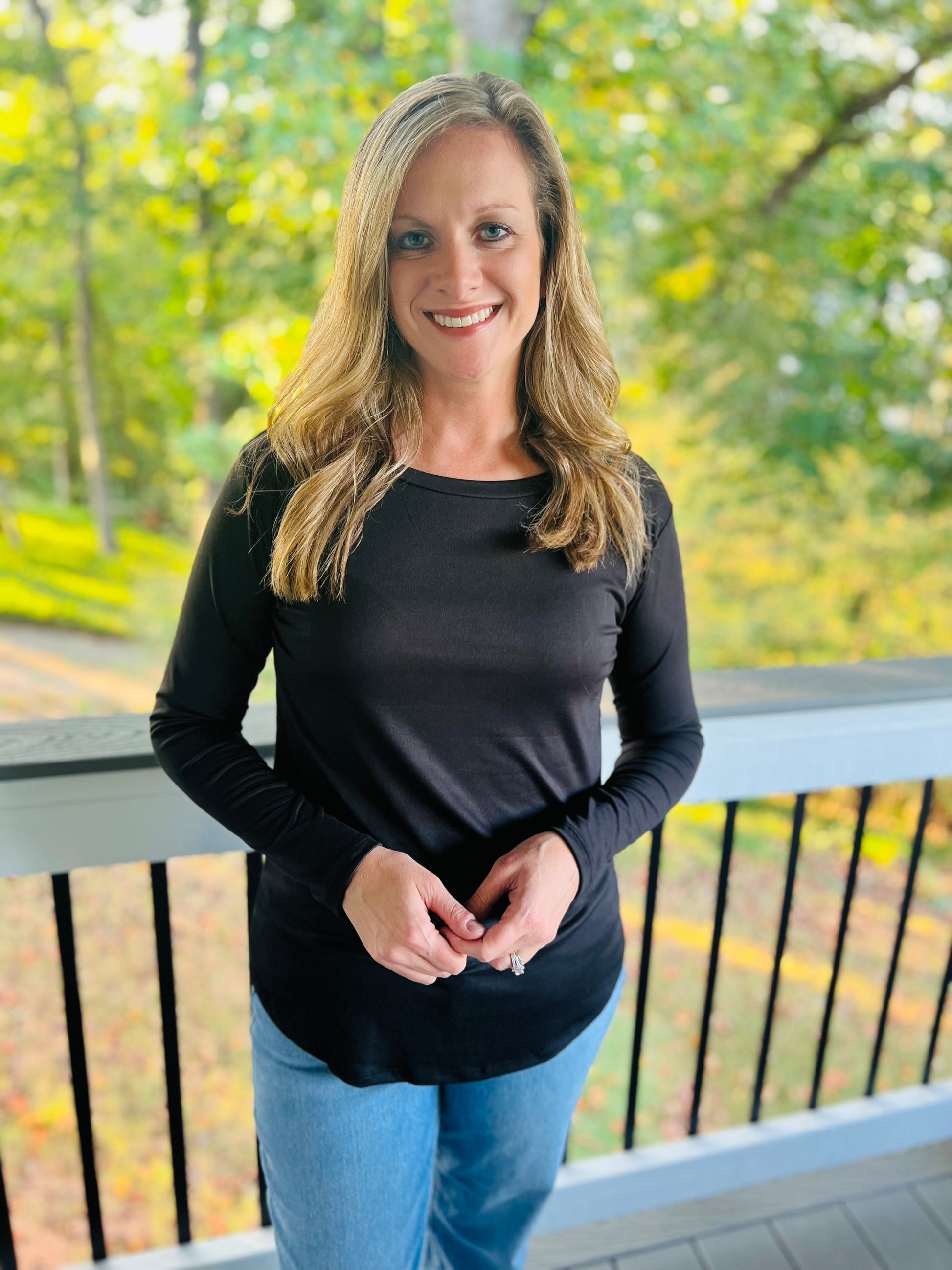 The June basic rounded tee is a must-have wardrobe staple. Made with soft material and featuring a rounded bottom, it can be worn on its own or layered with a cardigan. It fits true to size, but for a looser fit, size up. Stay comfortable and stylish with this versatile tee.
